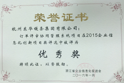 東華自創建以來,一直高度重視企業信息化建設工作,取得良好成效。日前,訂單評審協同管理系統被浙江省企業信息化促進會授予“2015企業信息化創新項目優秀獎”稱號。