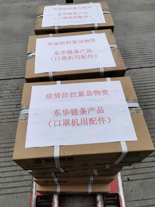 在當前“新冠肺炎”防控依然嚴峻的形勢下,口罩是全國各地急需緊缺物資,而口罩機鏈條是口罩生產設備的必備零件。東華于210日開工,當天深夜,國內市場部接到兩個特殊訂單,一個是福建某客戶急需300條口罩機鏈條,希望盡快發貨;另一個是廣東某客戶需要1000條口罩機鏈條,要求220日前必須交貨。