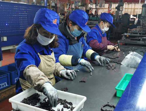 10天之內還要交付廣東客戶的1000條口罩機鏈條,東華汽車鏈事業部接到訂單后,臨時抽調一批10年以上的老員工進行培訓上崗,調配生產,正加班加點緊急趕貨,預計219日前保質保量提前交貨。
