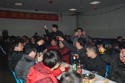 席間,工會主席魯小林、副主席高文生奔波兩地,向每一位員工表達了新春的問候和祝福,并囑咐大家一定要多打電話給家鄉的親人表示祝福和問候,同時,對員工們為東華的發展付出的辛勤勞動表達了感激之情。廣大員工在同吃年夜飯,同喝喜慶酒,同吃餃子、同慶佳節之際,也促進了彼此的交流、增強了彼此的感情。整個年夜飯活動始終處在一派熱鬧、祥和的氛圍之中。