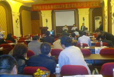 10月19日,重慶杭東鏈條銷售有限公司在重慶怡然大酒店舉行第二屆農(nóng)機(jī)鏈條配套產(chǎn)品技術(shù)交流會(huì)。參會(huì)30多家企業(yè)主要來自重慶地區(qū)。東華總部特派傳動(dòng)鏈?zhǔn)聵I(yè)部副部長(zhǎng)李奎林、輸送鏈?zhǔn)聵I(yè)部高級(jí)工程師閔乃忠參會(huì)。