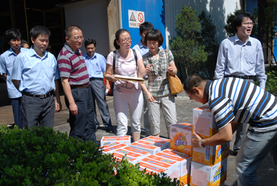 725,盛夏季節,烈日炎炎,余杭區總工會黨組書記、副主席胡建春,余杭經濟開發區總工會主席陸敏一行帶著毛巾、飲料等慰問品,到東華集團看望、慰問奮斗在熱處理車間一線的員工。東華集團副總經理袁立華,總經理助理、黨委書記、工會主席魯小林熱情地接待了胡書記一行,并對區總工會、開發區工會關心企業,看望慰問戰斗在高溫一線的員工表示誠摯的感謝。
