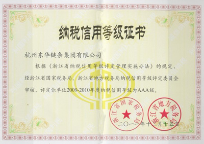 日前,浙江省國家稅務局和浙江省地方稅務局聯合公布了2009-2010年度納稅信用等級評定結果,東華鏈條集團與自強鏈傳動公司雙雙被評為浙江省年度納稅3A級企業。余杭區共有27家企業獲此殊榮。