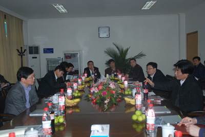 宣碧華董事長首先陪同徐書記一行到南區生產現場進行了調研,隨后進行座談。座談會上,宣董事長向徐書記一行匯報了東華集團近年發展情況及未來發展目標,重點介紹了近年東華利用國際金融危機的有利時機,實施“走出去”戰略取得的成效和下一步國際化戰略目標。