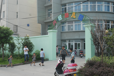 8月31日上午,銷售公司的小崔帶著女兒到家屬樓新開辦的幼兒園為孩子報名前參觀了幼兒園后說道:“不錯,這幼兒園挺大挺漂亮的,設施也齊全”。