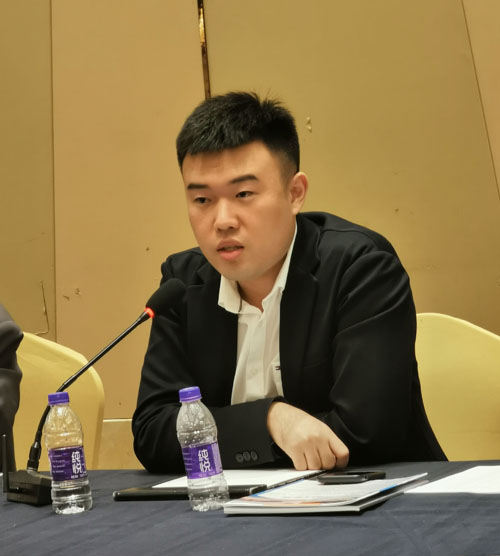 東華鏈條集團(tuán)副董事長宣成發(fā)言。他說,今年全球鏈傳動行業(yè)下行,國內(nèi)外競爭非常激烈。上個月我去參加歐洲鏈傳動協(xié)會的會議,今年整個歐洲鏈傳動下滑8%,對明年的預(yù)期也是下滑。