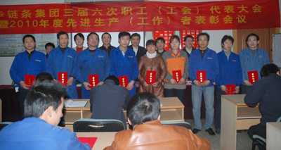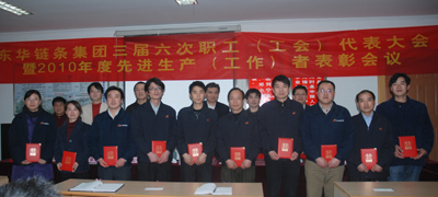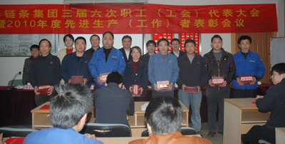隨后,魯小林作了2010年工會工作總結報告和2011年工會工作思路的報告。并宣讀了關于表彰2010年度12位優秀中層干部、19位崗位標兵和215位先進生產工作者的表彰文件。參會領導向被表彰的員工頒發了榮譽證書并合影留念。汽摩鏈事業部綜合處副處長馬曉光代表優秀中層干部、傳動鏈事業部零件車間沖制班長毛樹堂代表崗位標兵在會上作了熱情洋溢的發言,一致表示將繼續發揮模范帶頭作用,發揮個人最大潛能,圓滿完成各項工作。