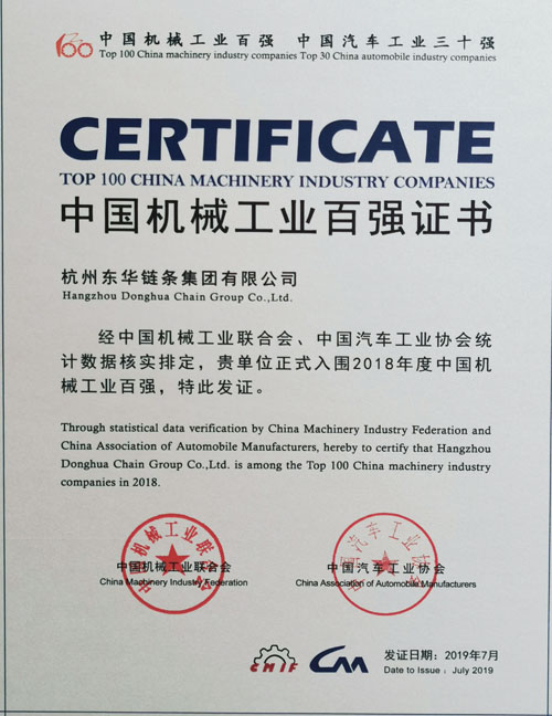 東華鏈條連續(xù)四年榮登中國機械工業(yè)百強榜