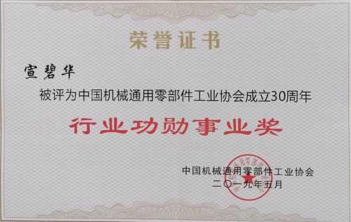 宣碧華獲中國機械通用零部件工業協會“行業功勛事業獎”
