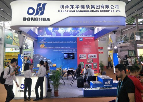 在本屆秋季廣交會上,東華鏈條集團展出了優質精密滾子鏈、板式鏈、橡膠鏈、農機鏈、不銹鋼鏈等產品。“DONGHUA”品牌深受來自世界各國鏈條采購商的青睞,展示了“DONGHUA”鏈條領頭羊形象。