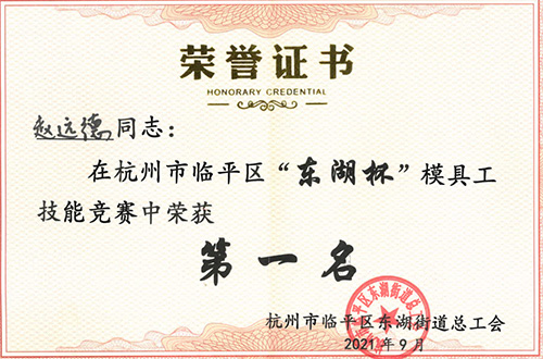 金秋送爽,丹桂飄香,在“9.26工匠日”來臨之際,公司員工趙遠德奪得臨平區(qū)“東湖杯”模具工技能競賽冠軍。