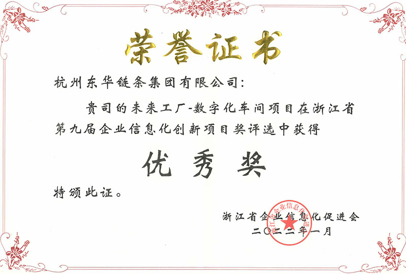 日前,由浙江省企業信息化促進會舉辦的浙江省第九屆企業信息化創新項目獎評選中,東華以板式鏈事業部制造車間為標桿的未來工廠——數字化車間項目在該評選中獲得優秀獎,表明東華在智能制造領域再創佳績。