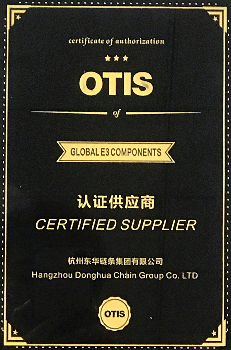 近年來,東華鏈條集團在扶梯鏈及自動人行道鏈的生產與銷售中為奧的斯(中國)有限公司提供了優質的產品、及時交付及售后配套服務,能獲得“認證供應商”稱號是奧的斯(中國)有限公司對東華鏈條品質的肯定,也給予了東華后續更多的動力。
