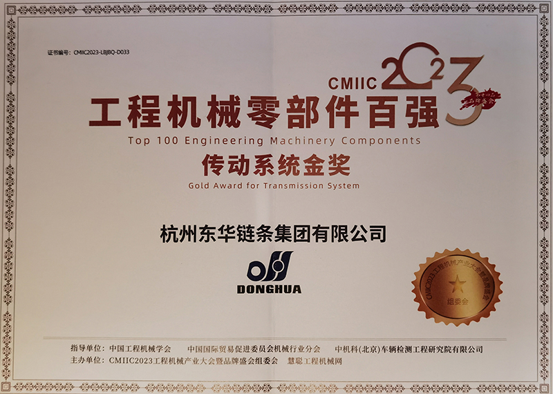 在CMIIC 2023工程機械產業大會上發布了《2023年工程機械行業運行分析報告與發展趨勢預判》。會上現場邀請了相關專家分享了創新引領高質量發展;新能源挖掘機施工應用方案等主題。會上發布2023年度工程機械行業榮譽榜單,東華鏈條獲評工程機械零部件百強傳動系統金獎。集團輸送鏈事業部總經理汪昌宏代表企業現場領獎。