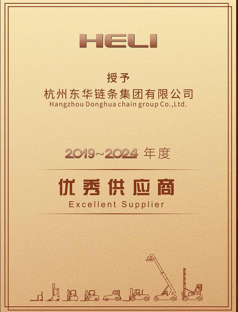 東華榮獲安徽合力“2019-2024年度優秀供應商”稱號