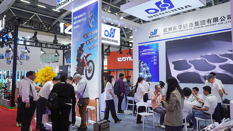 廣交會上,東華鏈條集團重點主推戰略級新品“X3系列高端滾子鏈條”,展現精密制造硬實力;再推傳統優勢領域的“農機鏈條、扶梯鏈條、物流輸送鏈條、不銹鋼食品鏈、提升設備鏈”等;重點展出了“高端摩托車鏈”,響應公司“摩鏈再出發”發展新戰略。其中,“叉車用高強度板式鏈”采用精準工藝控制,抗拉強度提升60%以上,適配1噸至50噸級叉車嚴苛工況,現已批量配套全球頭部叉車品牌;“堆高機專用鏈條”?通過優化工藝設計,實現疲勞壽命提升1倍以上,滿足港口設備對高疲勞、高強度及穩定性的需求?;針對礦山、港口等場景開發的“重載型鏈條”?,單鏈節承重可達3000kg,已成功應用于“一帶一路”沿線大型基建項目?。