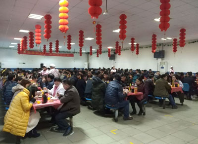 今年公司的年夜飯別有一番創意,除了在食堂內進行節日氣氛裝扮,掛起了大紅燈籠增加歡樂喜慶的氣氛外,食堂還對菜肴進行了創新,有可口的水果拼盤、干果、豐富的酒水、葷素搭配的美味菜肴,今年還特別準備了余杭當地名菜“紅燒羊肉”,最后一碗團圓水餃讓所有員工深深感受到東華大家庭的溫暖。年夜飯期間,集團公司各分工會主席代表公司分別到南區和新區食堂為員工送上新春問候和祝福,感謝他們一年來為企業的健康發展付出的努力。