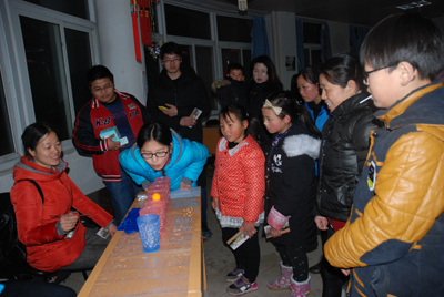 “元宵到,花燈鬧”,2月9日、10日晚上,東華集團公司的員工公寓樓文化活動中心大紅燈籠、橫幅、裝飾品把“鬧元宵”活動現(xiàn)場裝飾一新?,F(xiàn)場人聲鼎沸,擠滿了喜慶的員工,他們有的打保齡球、有的甩飛鏢、有的猜字謎、有的玩趣味套圈、有的吹乒乓球、有的盲人摸象……
