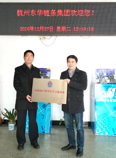 會(huì)上,何處長(zhǎng)針對(duì)“中國(guó)出口質(zhì)量安全示范企業(yè)”的背景及作用作了介紹。袁副總首先感謝質(zhì)檢系統(tǒng)20多年來對(duì)東華的指導(dǎo)和幫助。隨后,針對(duì)東華產(chǎn)品質(zhì)量提升和知識(shí)產(chǎn)權(quán)等進(jìn)行介紹。何處長(zhǎng)說,東華集團(tuán)自2007年開展免驗(yàn)工作,到現(xiàn)在已將近十年時(shí)間,隨著出口檢驗(yàn)范圍的變化,鏈條產(chǎn)品已不需要強(qiáng)制檢驗(yàn),但東華集團(tuán)一直按照標(biāo)準(zhǔn)堅(jiān)持做好自主管理,產(chǎn)品質(zhì)量不斷提升,質(zhì)量在全國(guó)領(lǐng)先,給同行業(yè)樹立了榜樣,是中國(guó)鏈條行業(yè)的一面旗幟。為促進(jìn)出口產(chǎn)品質(zhì)量安全水平提升,培育出口競(jìng)爭(zhēng)新優(yōu)勢(shì),根據(jù)《中國(guó)出口質(zhì)量安全示范企業(yè)創(chuàng)建工作規(guī)范(試行)》的規(guī)定,經(jīng)各直屬檢驗(yàn)檢疫局評(píng)估推薦,國(guó)家質(zhì)檢總局審核,首批授予東華集團(tuán)“中國(guó)出口質(zhì)量安全示范企業(yè)”稱號(hào)。此榮譽(yù)實(shí)質(zhì)為“出口產(chǎn)品免驗(yàn)”的延續(xù),允許企業(yè)可以在任何包裝上做宣傳,希望東華鏈條集團(tuán)越做越好。