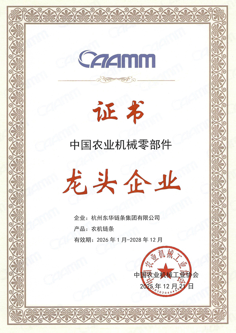 中國農業(yè)機械零部件龍頭企業(yè)是國內農機零部件領域極具權威性的行業(yè)榮譽。東華鏈條自2016年以來,已連續(xù)多年獲此殊榮,彰顯了企業(yè)在農機傳動領域的持續(xù)領先地位。