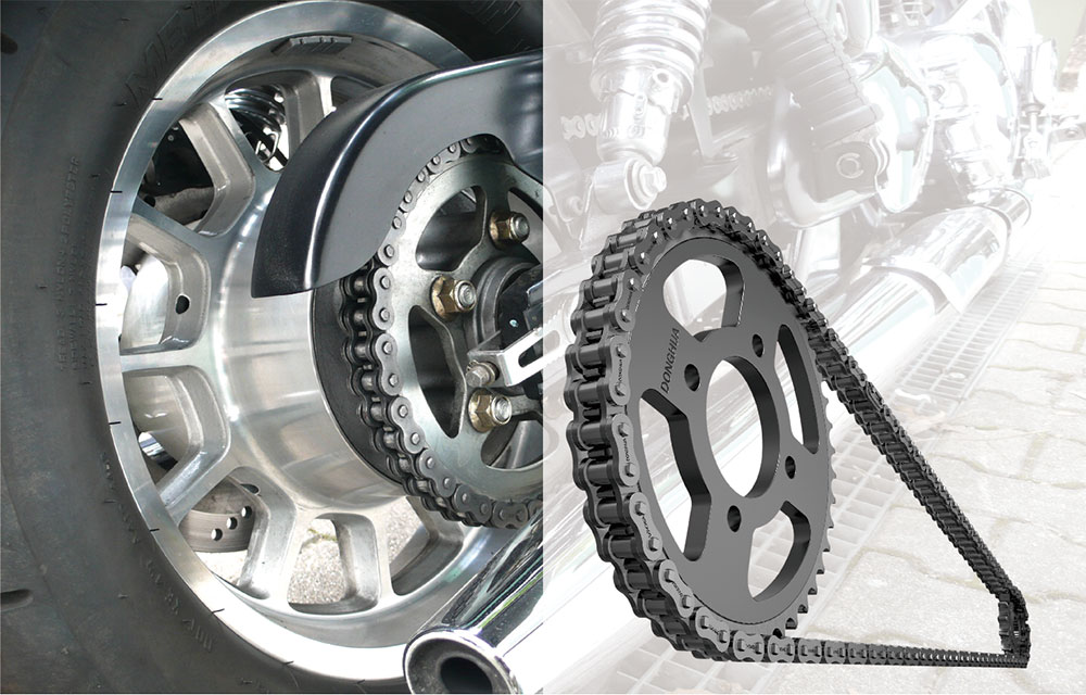 摩托車行業用鏈條主要有摩托車發動機用正時鏈條和摩托車后輪驅動用鏈條,摩托車驅動鏈條主要分為標準滾子鏈和密封圈鏈條。