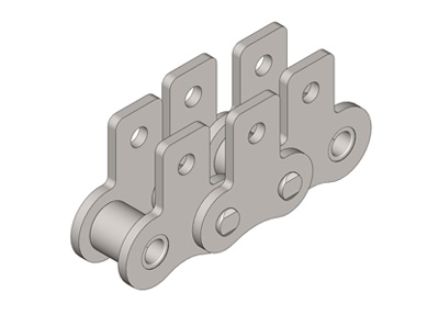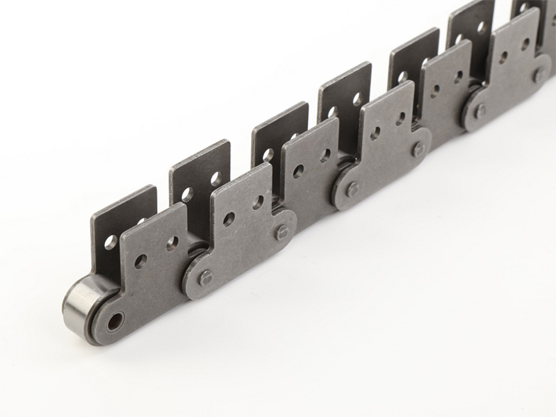 ● 輸送用滾子鏈的附件根據(jù)使用要求設(shè)計(jì)不同的結(jié)構(gòu)形式,具有廣泛性、多樣性等特點(diǎn),其中水平壓彎附板、帶孔直立附板、加長(zhǎng)銷軸等附件應(yīng)用較為廣泛。